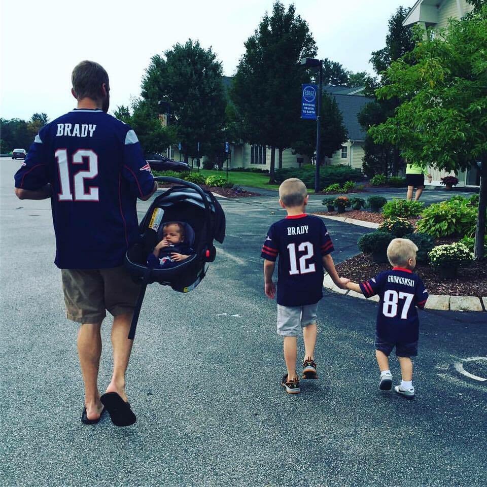 I am just kidding but Sunday’s are filled with yelling, excitement, and family time come around 1:00 kick off. We always where Patriots gear and even sometimes to church. I wear Brady, Nicki wears Bennett, Ethan was Amendola, but out grew it so just inherited a Gronk from Nicki, Bishop is Gronk, Benny typically rocks the hoodie like Coach.