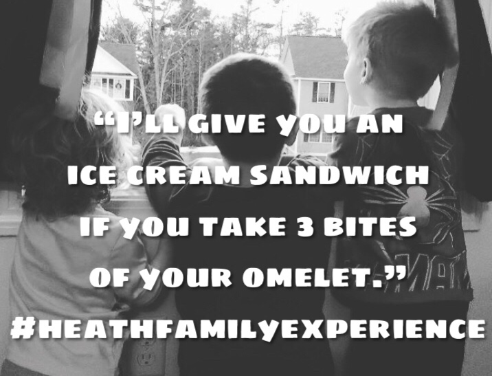 #7 “Buddy, I’ll give you an ice cream sandwich if you take 3 bites of your omelet.”