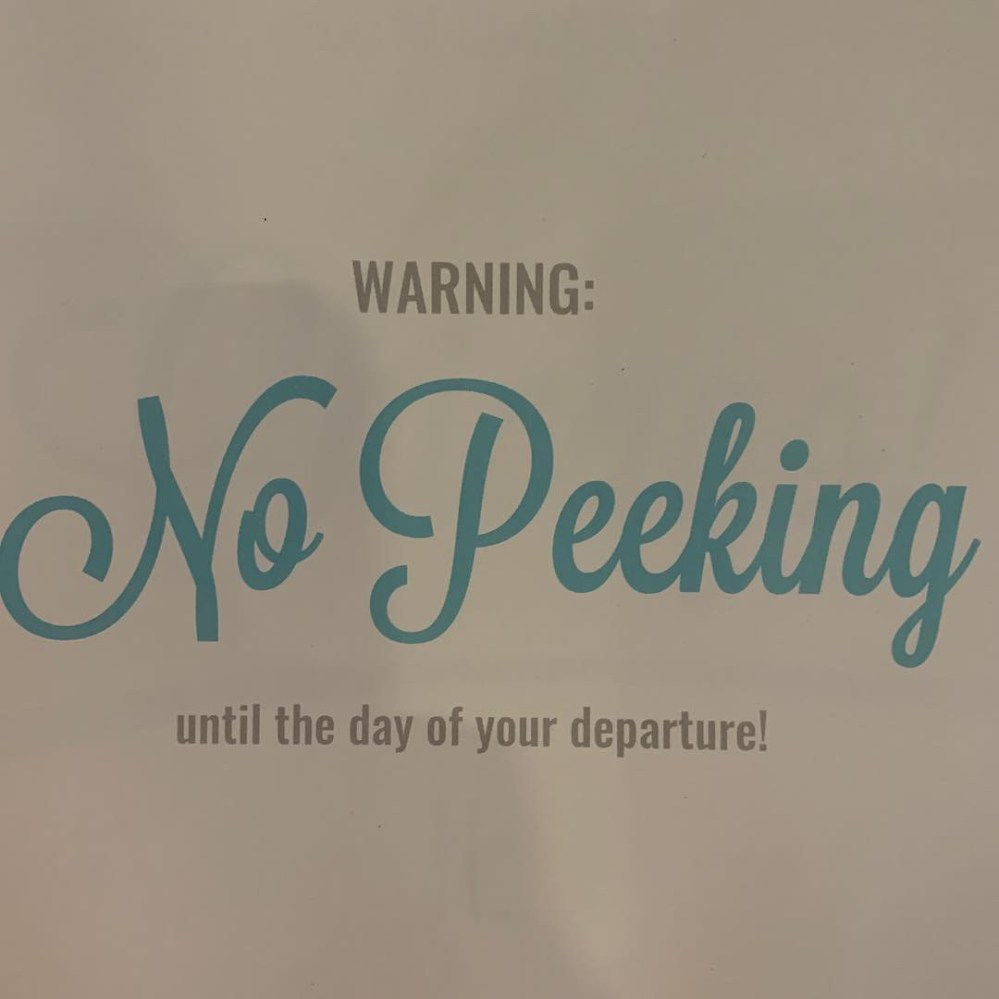 The day before we left an envelope arrived in the mail with the words “DO NOT OPEN” on it. And we didn’t. Sure, we could have ruined the surprise right there and then…but why spoil all the fun? Instead, we waited until we were in the airport and opened the envelope for a big reveal! Drum roll please…